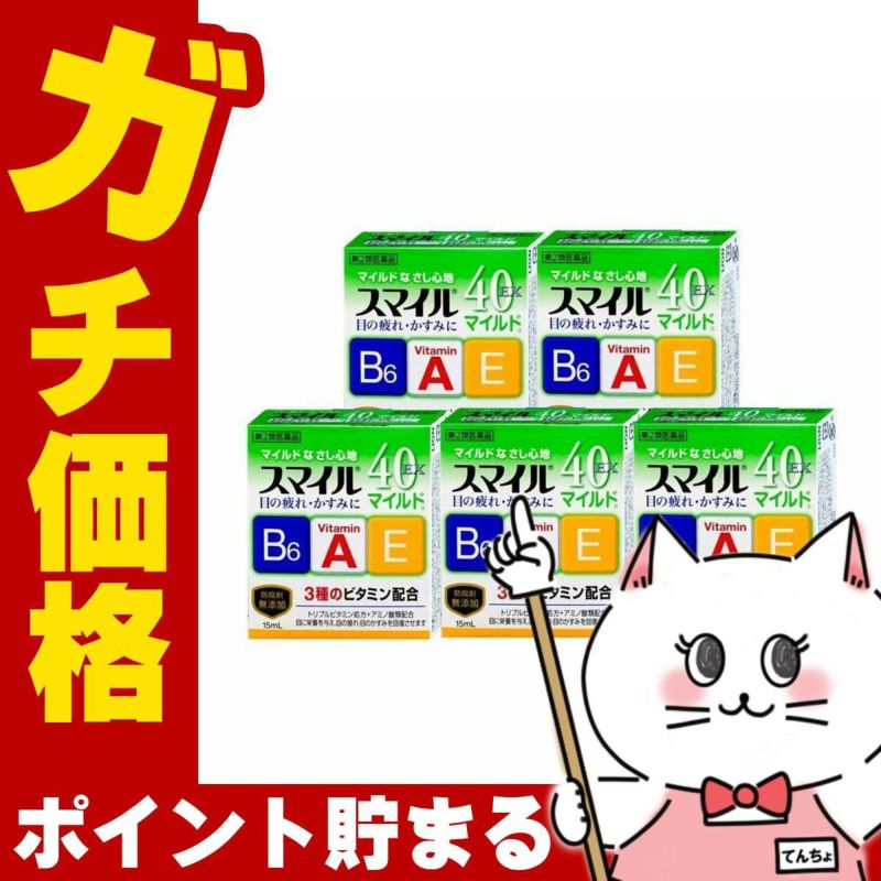 【第2類医薬品】【セット】スマイル40EXマイルド 15ml×5個【ライオン株式会社】【目薬/目の疲れ/目のかすみ/充血/かゆみ】【メール便対応商品】【SBT】 (6043228-set4)