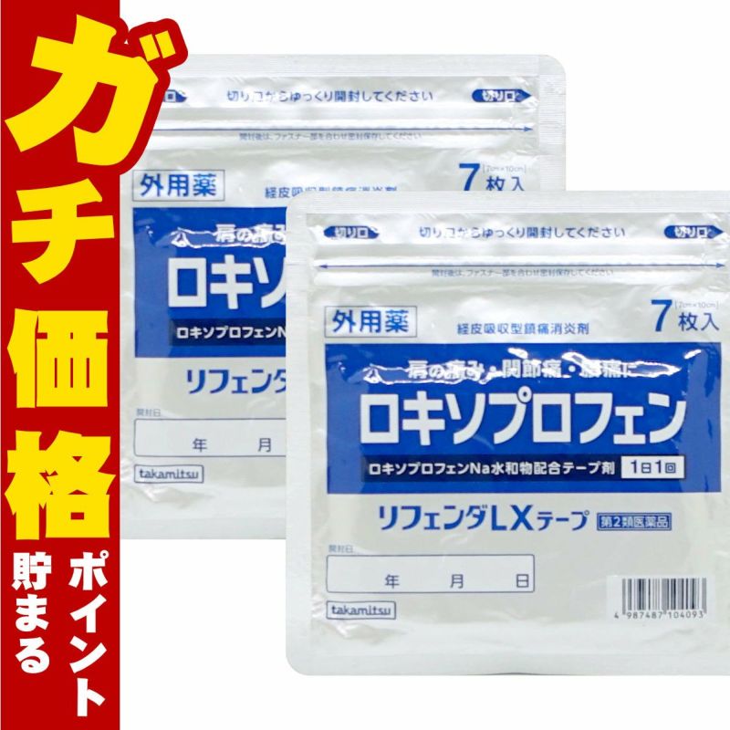 【第2類医薬品】【セット】リフェンダLXテープ 7枚入×2個(セルフメディケーション税制対象)【タカミツ】【肩こり・関節痛/湿布/シップ/箱なし/ロキソニン/ジェネリック】【メール便対応商品】【SBT】(6062134-set1)