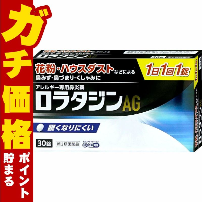 【第2類医薬品】ロラタジンAG 30錠(セルフメディケーション税制対象)【日新薬品工業】【鼻炎薬/クラリチン/ジェネリック/眠くなりにくい】【メール便対応商品】【SBT】(6062396)