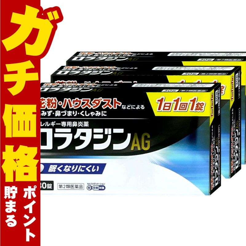 【第2類医薬品】【セット】ロラタジンAG 30錠×3個(セルフメディケーション税制対象)【日新薬品工業】【鼻炎薬/クラリチン/ジェネリック/眠くなりにくい】【メール便対応商品】【SBT】(6062396-set2)