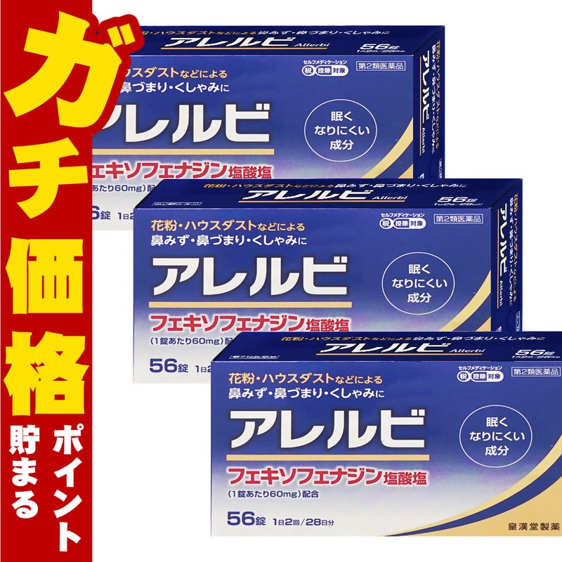 【第2類医薬品】【セット】アレルビ 56錠 3個セット (セルフメディケーション税制対象)【鼻炎・アレルギー】【皇漢堂製薬株式会社】【鼻のアレルギー症状の緩和】【SBT】(6043161-set1)