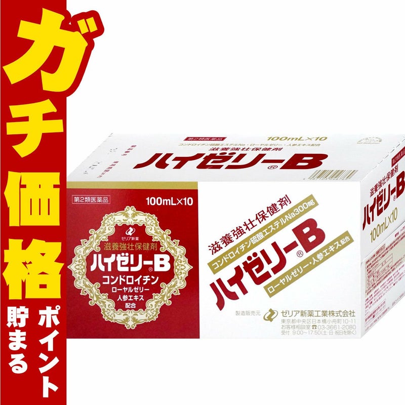 ハイゼリーBは、結合組織に多く含まれるコンドロイチン硫酸と新陳代謝を促進し、疲れをとるローヤルゼリー、滋養強壮成分で、抵抗力を高める働きもある人参エキスを主体にした滋養強壮保健剤です。強壮成分である、ゴオウやイカリ草エキス、不足しがちな各種ビタミンも配合しています。