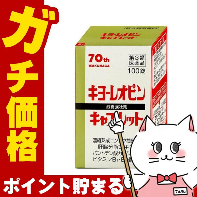 キヨーレオピンキャプレット4は、ニンニクを長期間かけ熟成し、濃縮して得られた濃縮熟成ニンニク抽出液に、肝臓分解エキス、ビタミンB、ビタミンB12、及び、パントテン酸カルシウムを配合した滋養強壮剤です。飲みやすいカプセル型のキャプレットで、8才以上のお子様、妊娠授乳期の方にも服用いただけます。