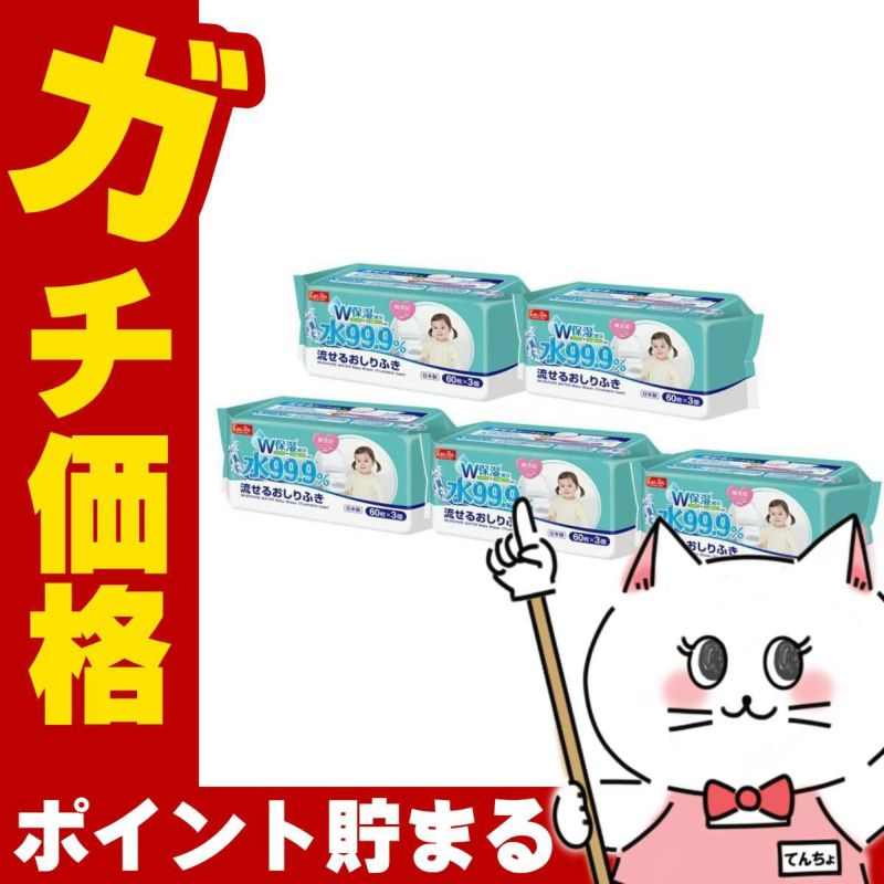 5. 【バファ☆ポン応援プライス!】【セット】レック 99.9流せるおしりふきw 60枚×3 ×5個セット E00870【ベビー用品 水99.9% お尻拭き】【SBT】 (6045141-set2)