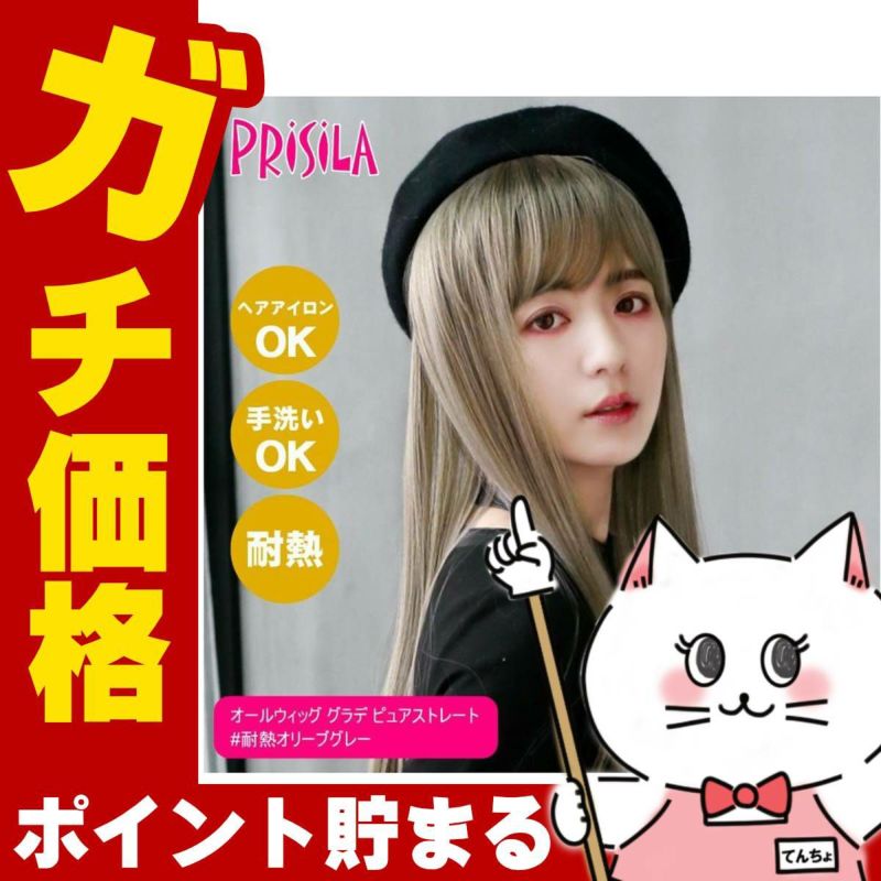【バレないウィッグ】プリシラ オールウィッグ グラデ ピュアストレート CTA-683-CTOG #耐熱オリーブグレー【耐熱ファイバー100% ヘアアイロンOK 手洗いOK】【宅配便送料無料】(6058229)