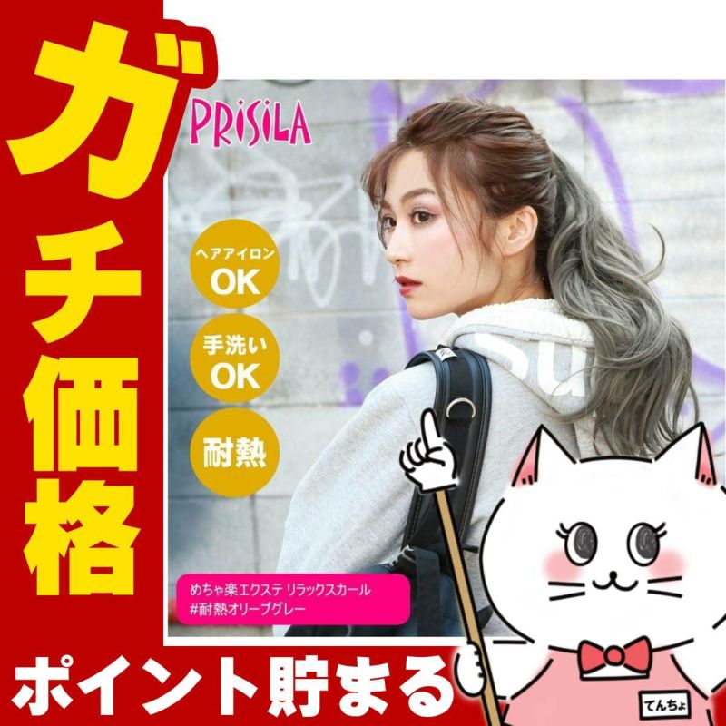 【バレないウィッグ】プリシラ めちゃ楽エクステ リラックスカール TX-26-TOG #耐熱オリーブグレー【日本製耐熱ファイバー100% ヘアアイロンOK 手洗いOK】【SBT】(6058434)