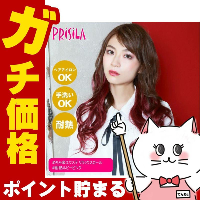 【バレないウィッグ】プリシラ めちゃ楽エクステ リラックスカール TX-26-TRP #耐熱ルビーピンク【日本製耐熱ファイバー100% ヘアアイロンOK 手洗いOK】【SBT】(6058435)