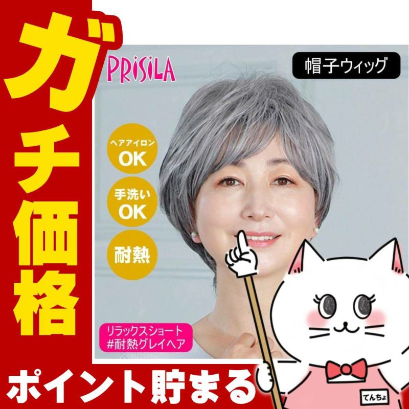 5. プリシラ 帽子ウィッグ リラックスショート BO-01-TGH #耐熱グレイヘア Mサイズ(約54~60cm)【医療用 フルウィッグ かつら 和装 かわいい 可愛い 小顔 簡単 お手軽 初心者向け 女性 ボブ 】【宅配便送料無料】(6057658)