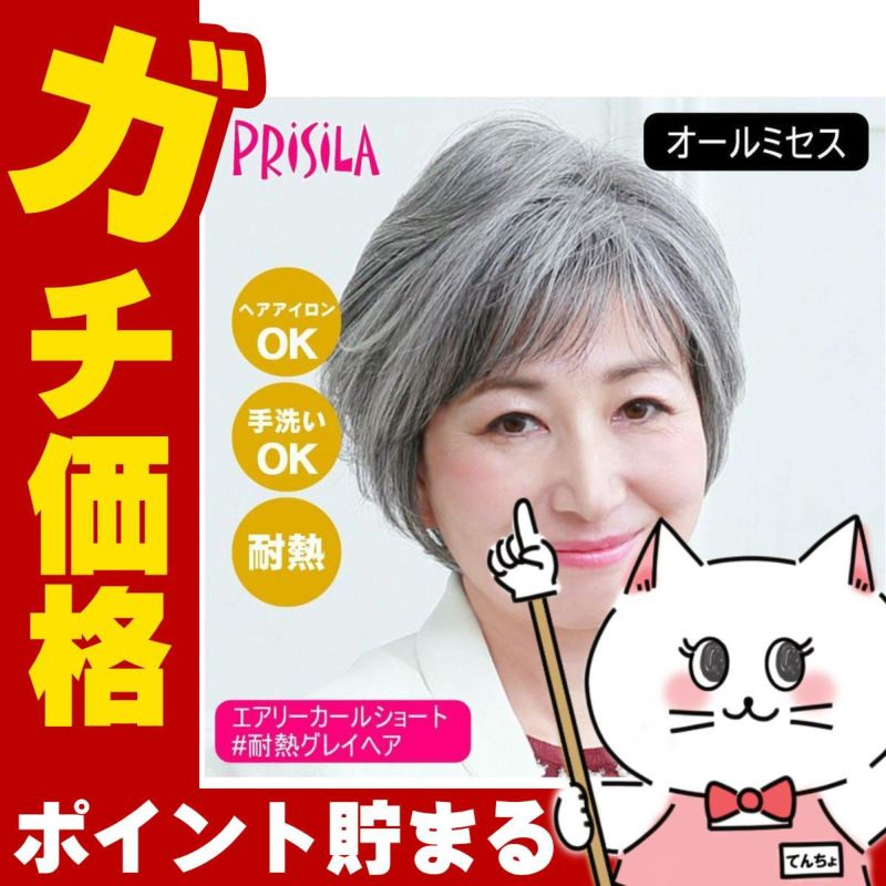 プリシラ オールミセスエアリーカールショート A-112-TGH #耐熱グレイヘア 【医療用 フルウィッグ かつら 和装 シニア 白髪隠し 自然 簡単 お手軽 初心者向け 金属不使用 締め付けない】【宅配便送料無料】(6057700)