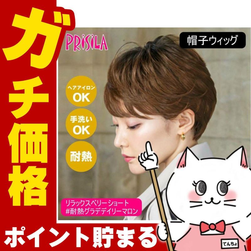 7. 【バレないウィッグ】プリシラ 帽子ウィッグ リラックスベリーショート BO-06-GTDM #耐熱グラデデイリーマロン Mサイズ(約54~60cm)【ヘアアイロンOK 手洗いOK】【宅配便送料無料】(6058038)