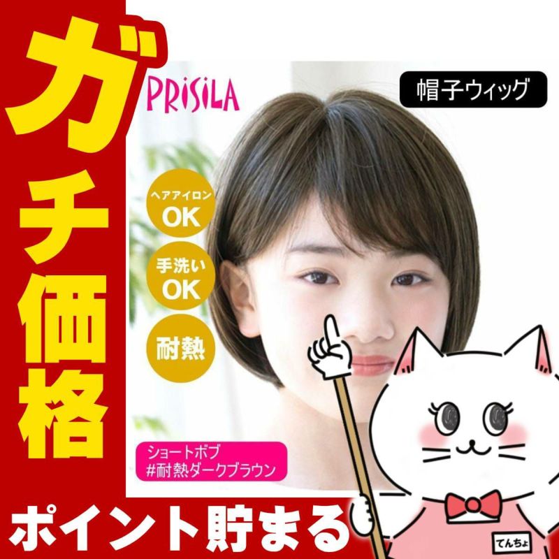 プリシラ 帽子ウィッグフィット ショートボブ BO-11-TDB #耐熱ダークブラウン Sサイズ(約52~56ccm)【医療用 フルウィッグ かつら 和装 コスプレ 自然 おしゃれ かわいい 可愛い 小顔 簡単 お手軽 初心者向け ボブ 金属不使用 締め付けない】【宅配便送料無料】(6057725)