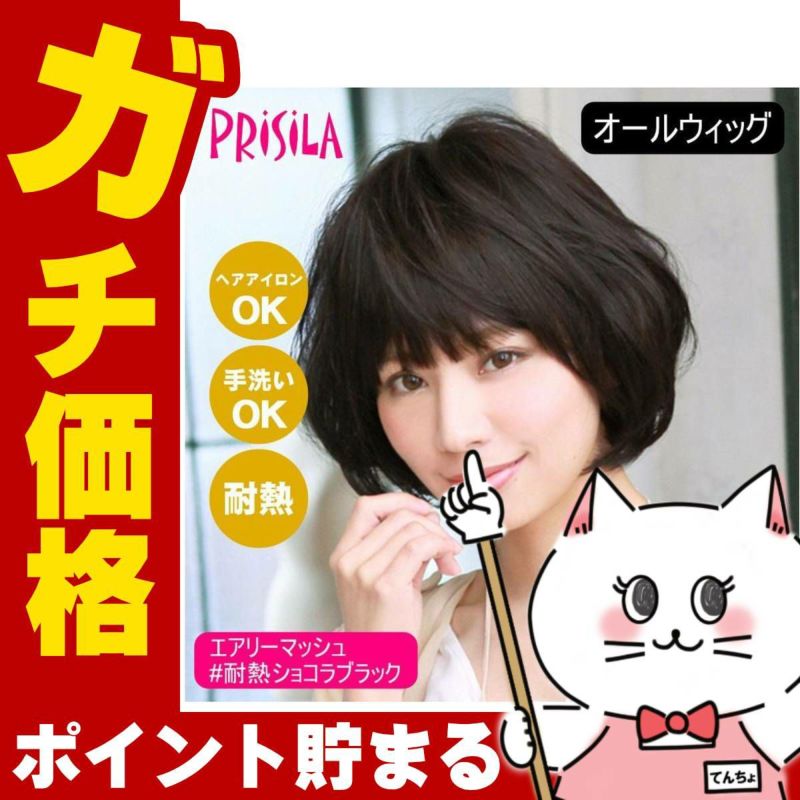 プリシラ オールウィッグ エアリーマッシュ A-684-TCK #耐熱ショコラブラック 【かつら 和装 コスプレ 医療用 自然 おしゃれ かわいい 可愛い 小顔 簡単 お手軽 初心者向け 女性 】【宅配便送料無料】(6057748)