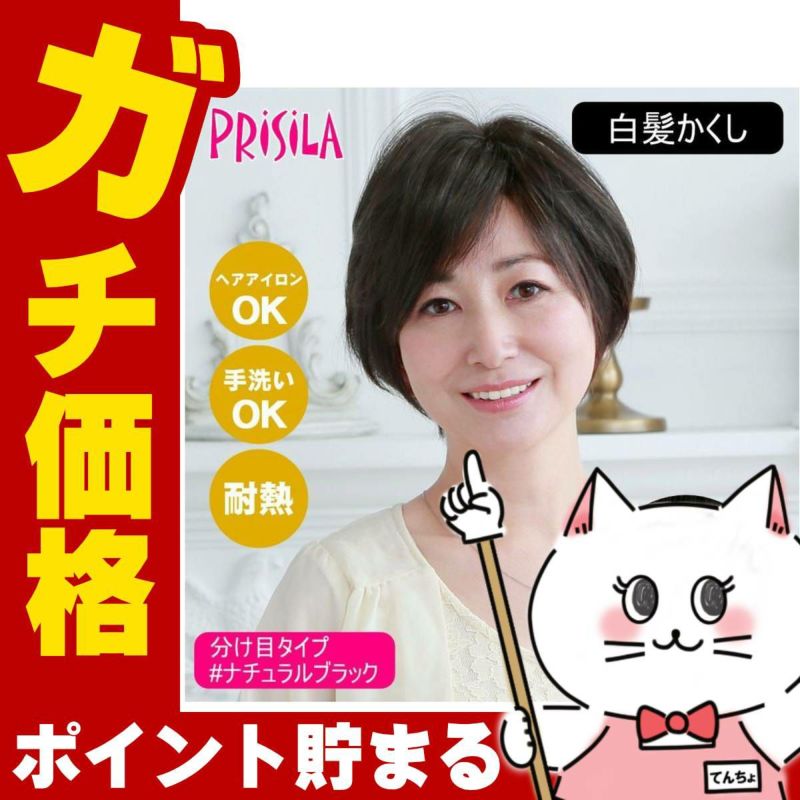 プリシラ 白髪かくし 分け目タイプ ST-005-2N #ナチュラルブラック 【白髪隠し カバー ピンポイント 頭頂部ウィッグ つけ毛 かつら 医療用 和装 コスプレ 自然 簡単 お手軽 普段使い】【宅配便送料無料】(6057678)