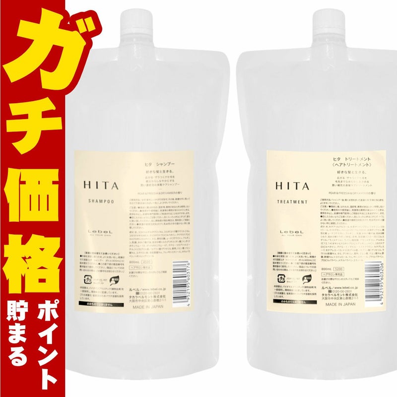 【セット】ルベル ヒタ シャンプー 詰替 800ml+ヒタ トリートメント 詰替【レフィル/リフィル/詰め替え】【HITA 美髪ケアシャンプー 美髪ケアトリートメント ヘアサロン専売品】【宅配便送料無料】 (6060803-set1)