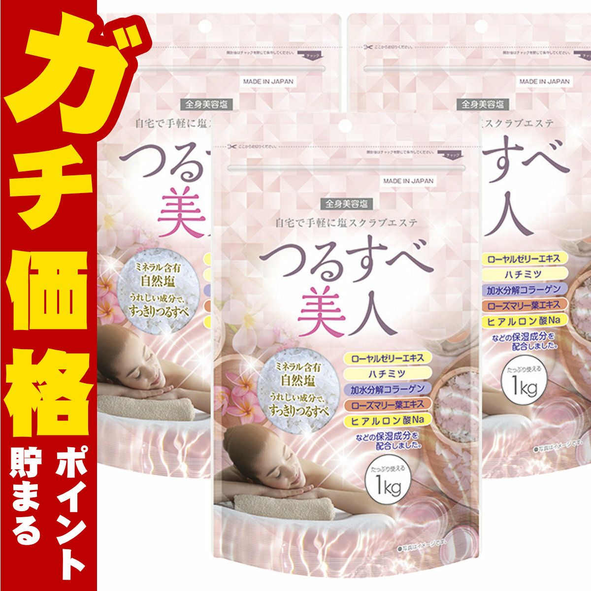 【3個セット】ユーワ つるすべ美人 1kg×3個【全身美容塩】【 ボディケア マッサージ】【宅配便送料無料】(6049185-set3)のレビューを書く