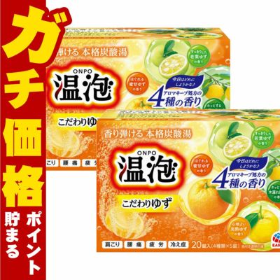 2個セット】アース製薬 温泡 こだわりゆず 炭酸湯 5錠×4種×2個【ONPO 入浴剤】【医薬部外品】【宅配便送料無料】 (6054332-set2)のレビューを書く