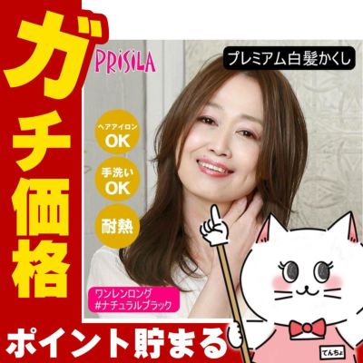 プリシラ プレミアム白髪かくし ワンレンロング ST-011-2N #ナチュラルブラック 【白髪隠し 広範囲タイプ カバー ピンポイント 頭頂部ウィッグ つけ毛 かつら 医療用 和装 コスプレ 自然 簡単 お手軽 普段使い】【宅配便送料無料】(6057690)のレビューを書く