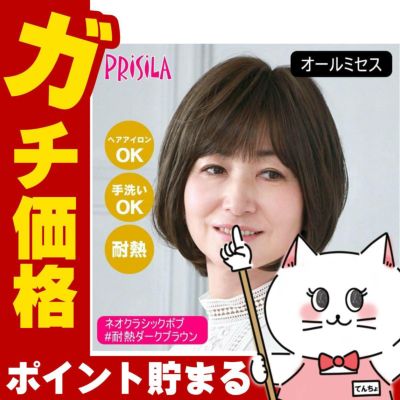 プリシラ オールミセスネオクラシックボブ A-115-TDB #耐熱ダークブラウン 【医療用 フルウィッグ かつら 和装 シニア 白髪隠し 自然 簡単 お手軽 初心者向け 金属不使用 締め付けない】【宅配便送料無料】(6057704)のレビューを書く