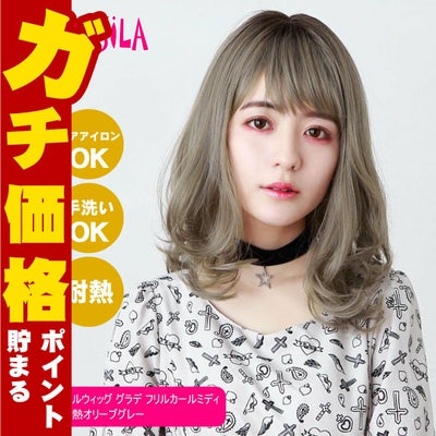 【バレないウィッグ】プリシラ オールウィッグ グラデ フリルカールミディ CTA-693-CTOG #耐熱オリーブグレー【耐熱ファイバー100% ヘアアイロンOK 手洗いOK】【宅配便送料無料】(6058233)のレビューを書く