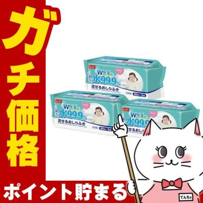 【バファ☆ポン応援プライス!】【セット】レック 99.9流せるおしりふきw 60枚×3 ×3個セット E00870【ベビー用品 水99.9% お尻拭き】【SBT】(6045141-set1)のレビュー