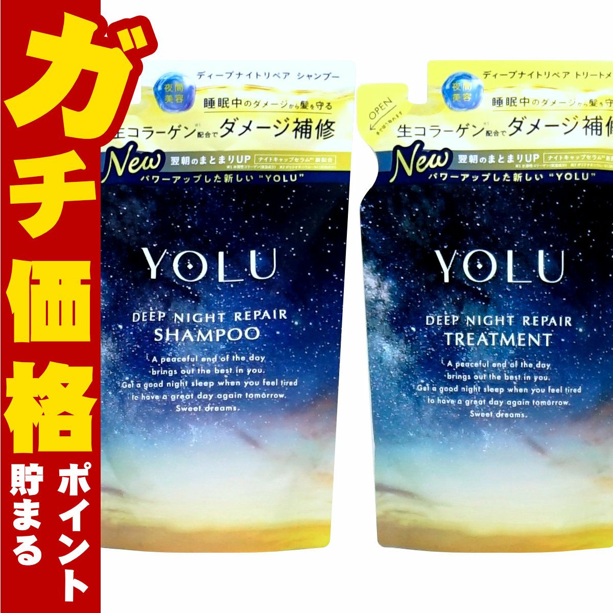 【セット】YOLU(ヨル) ディープナイトリペア シャンプー・ トリートメント 詰め替え 【ディープ】詰替 容量350ml+350g ナイトリペア スリークナイトケア ナイトケア ナイト セラミド ナイトキャップ | 夜間美容【メール便対応商品】【SBT】 (6055640-set1)