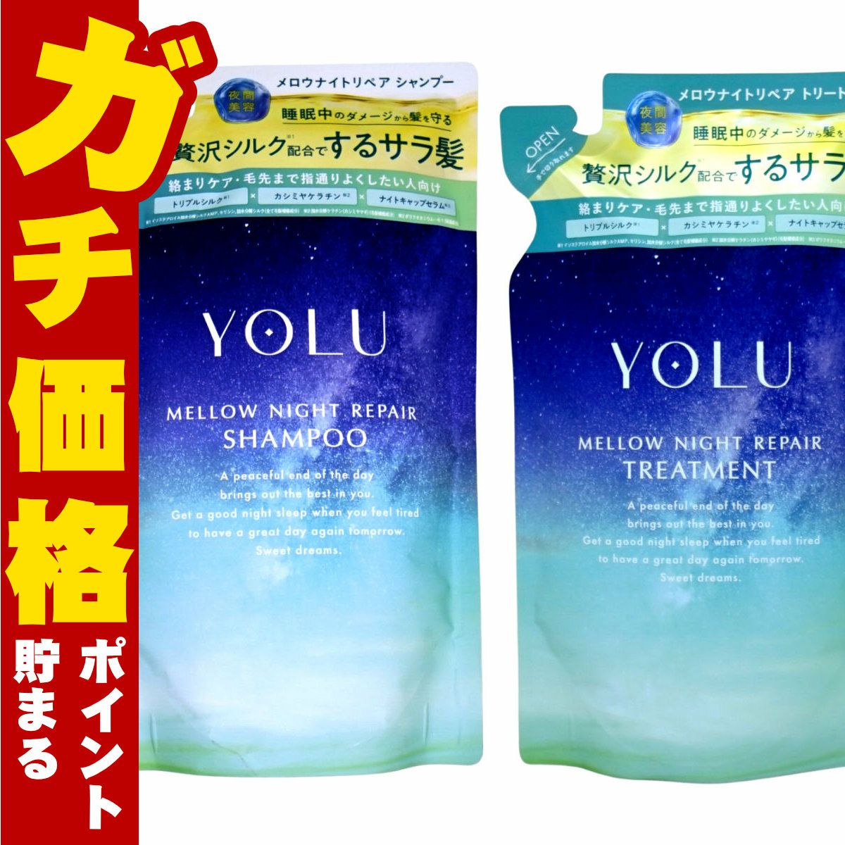 【セット】YOLU(ヨル) メロウナイトリペア シャンプー・トリートメント 詰め替え 【メロウ】詰替 容量350ml+350g ナイトリペア スムースナイトリペア処方 ナイトケア ナイト セラミド ナイトキャップ | 夜間美容【メール便対応商品】【SBT】(6064160-set1)