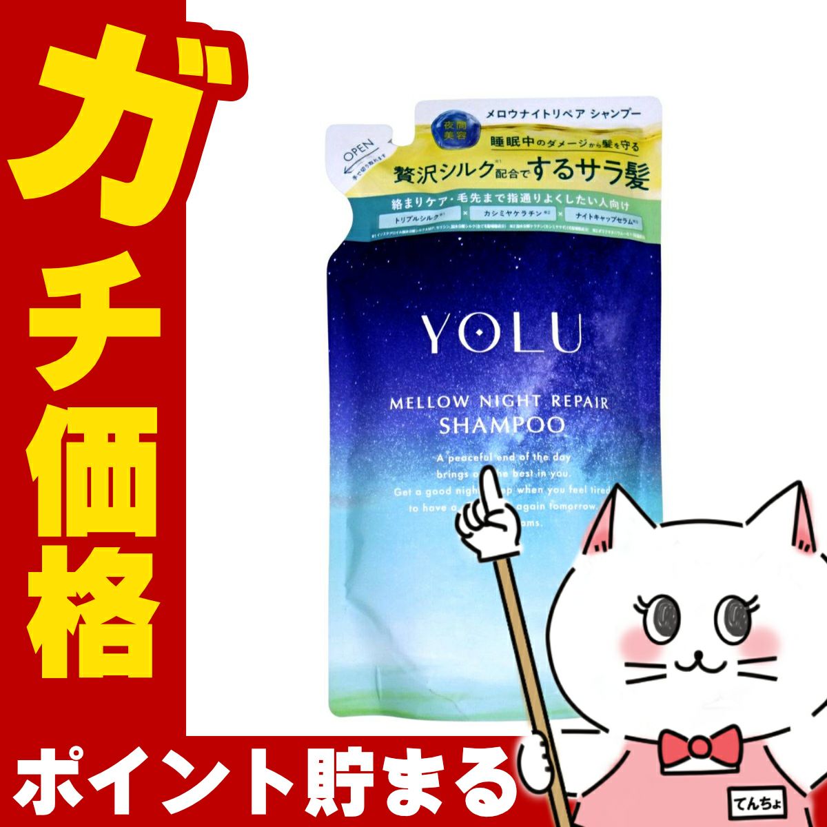 YOLU(ヨル) リラックスナイトリペア シャンプー 詰め替え 370ml ナイトリペア スリークナイトケア 詰替 ナイトケア ナイト セラミド ナイトキャップ | 夜間美容【メール便対応商品】【SBT】(6053343)