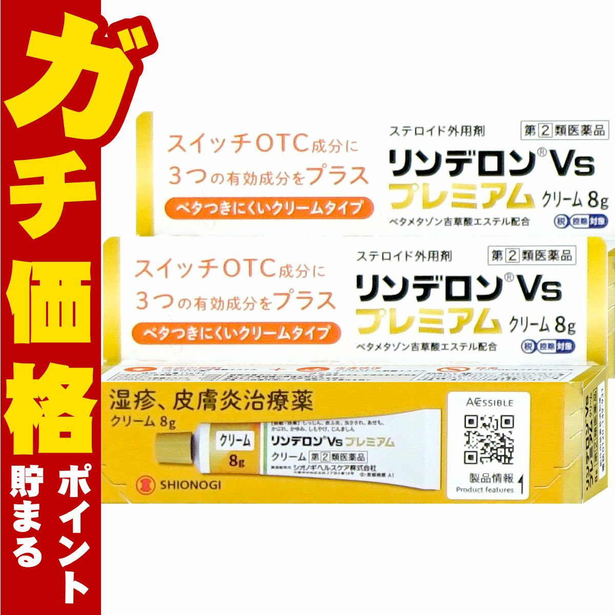 【指定第2類医薬品】【セット】リンデロンVsプレミアム軟膏 8g×2個(セルフメディケーション税制対象)【シオノギヘルスケア】【皮膚の薬】【メール便対応商品】【SBT】(6059129-set1)