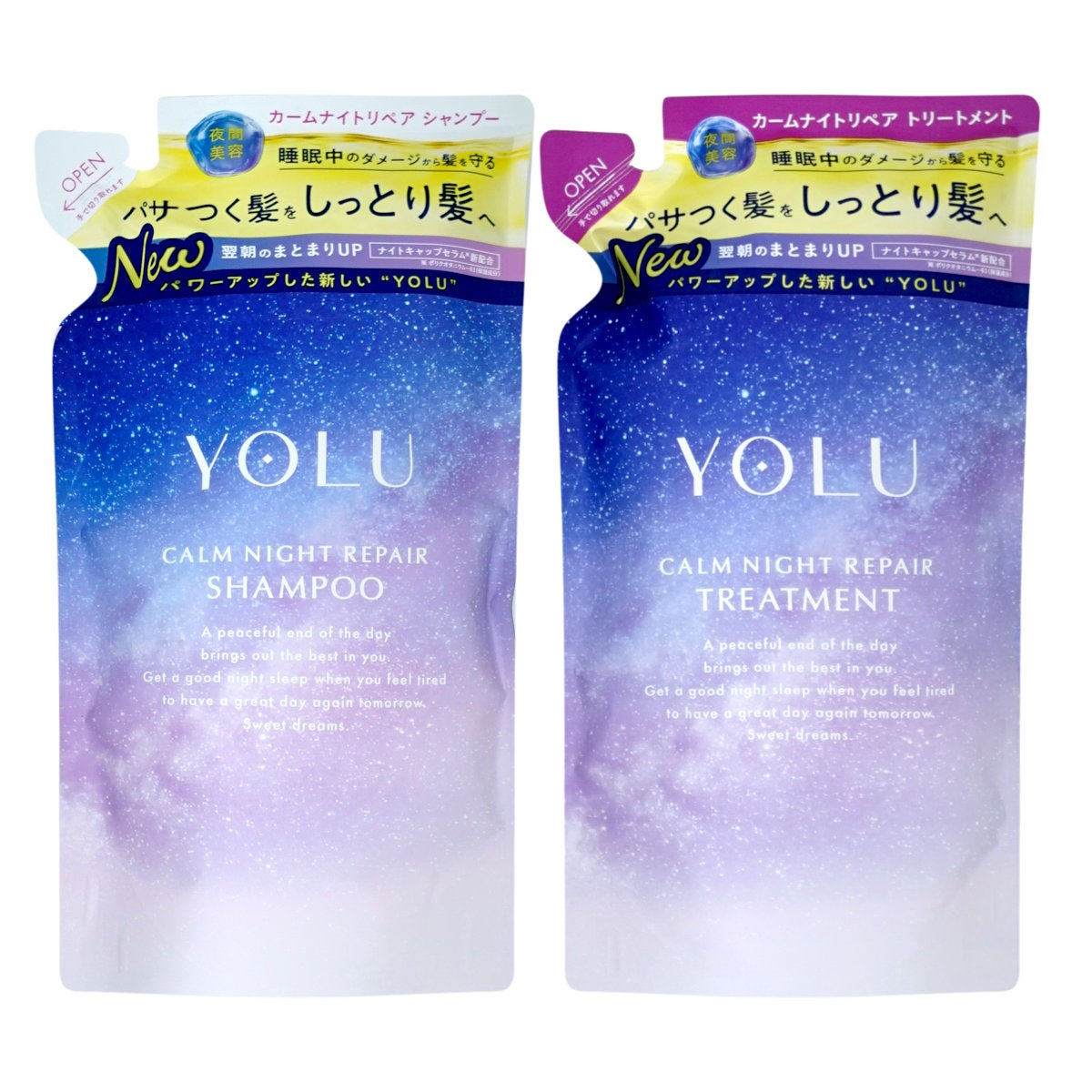 【セット】YOLU(ヨル) ナイトリペア シャンプー・ トリートメント 詰め替え 【カーム】詰替 容量370ml+370g ナイトリペア スリークナイトケア ナイトケア ナイト セラミド ナイトキャップ | 夜間美容【メール便対応商品】【SBT】(6053339-set2)